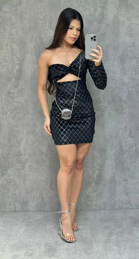 Vestido midi malha com detalhes em brilho modelo Luiza